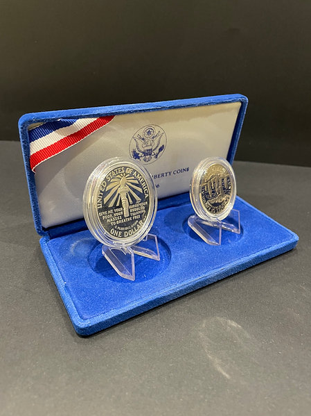 1986 United States Liberty Coins Complete Set – 100 Anniversary Edition – 1 Dollar Fine Silver – Half Dolllar Copper