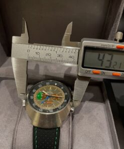 This icon boasts a robust 43mm stainless steel satin-finished case, housing a multi-layer dial with unique color accents of green, blue, and orange, designed to enhance legibility in various aviation environments.