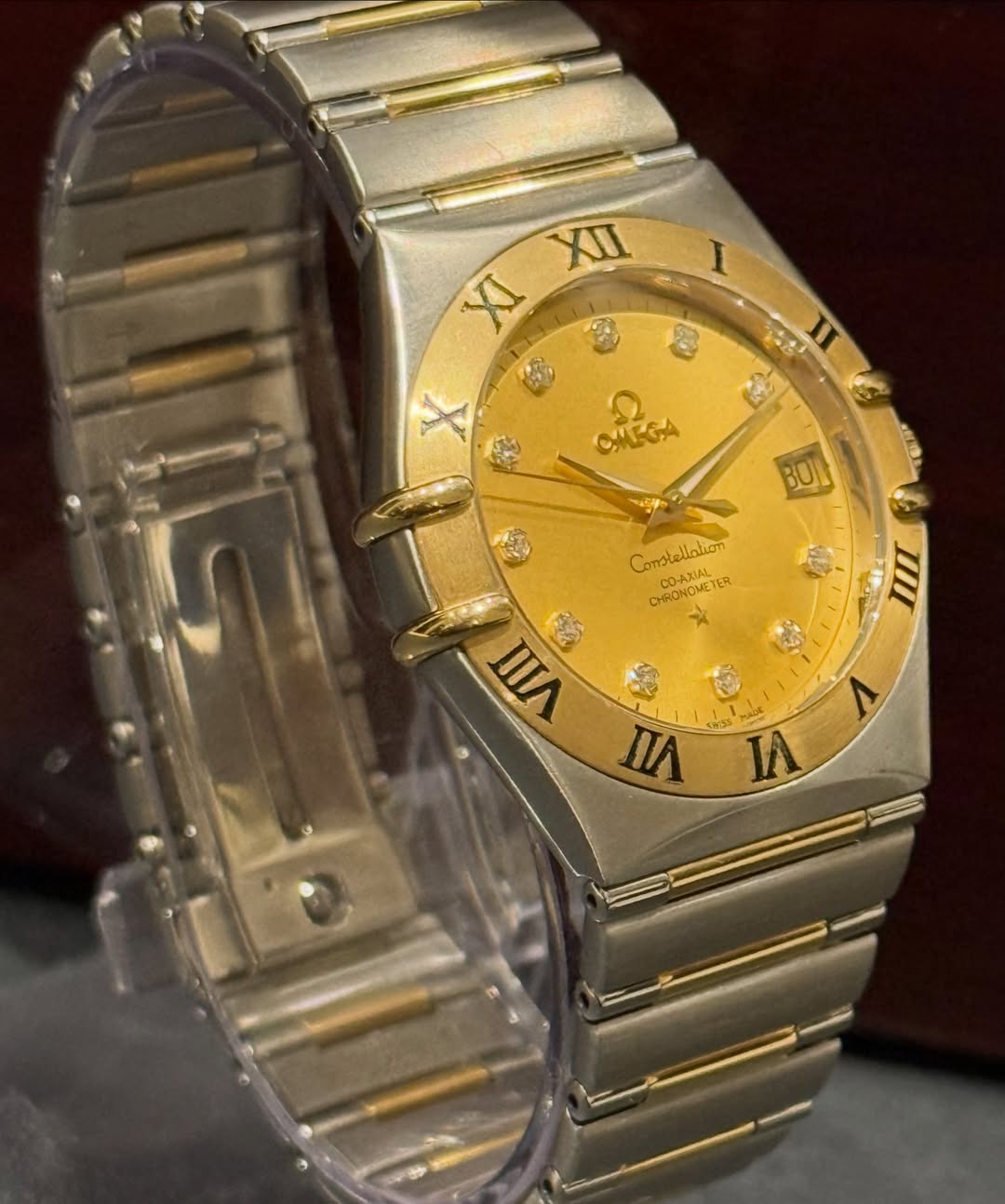 Omega Co-Axial Constellation Gold Steel Diamonds Large Case