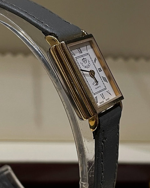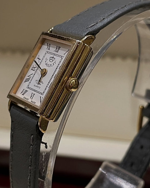 Preowned Vintage Royal Classic Masterpiece by Rotary Switzerland – An elegant piece from Rotary’s royal editions – featuring a refined rectangular design, a white dial adorned with black Roman numerals original Rotary luxury grey leather strap – Quartz movement – 17mm width × 19mm length – crafted with precision to embody royal elegance and timeless Swiss craftsmanship – Comes with its original box – in excellent overall condition