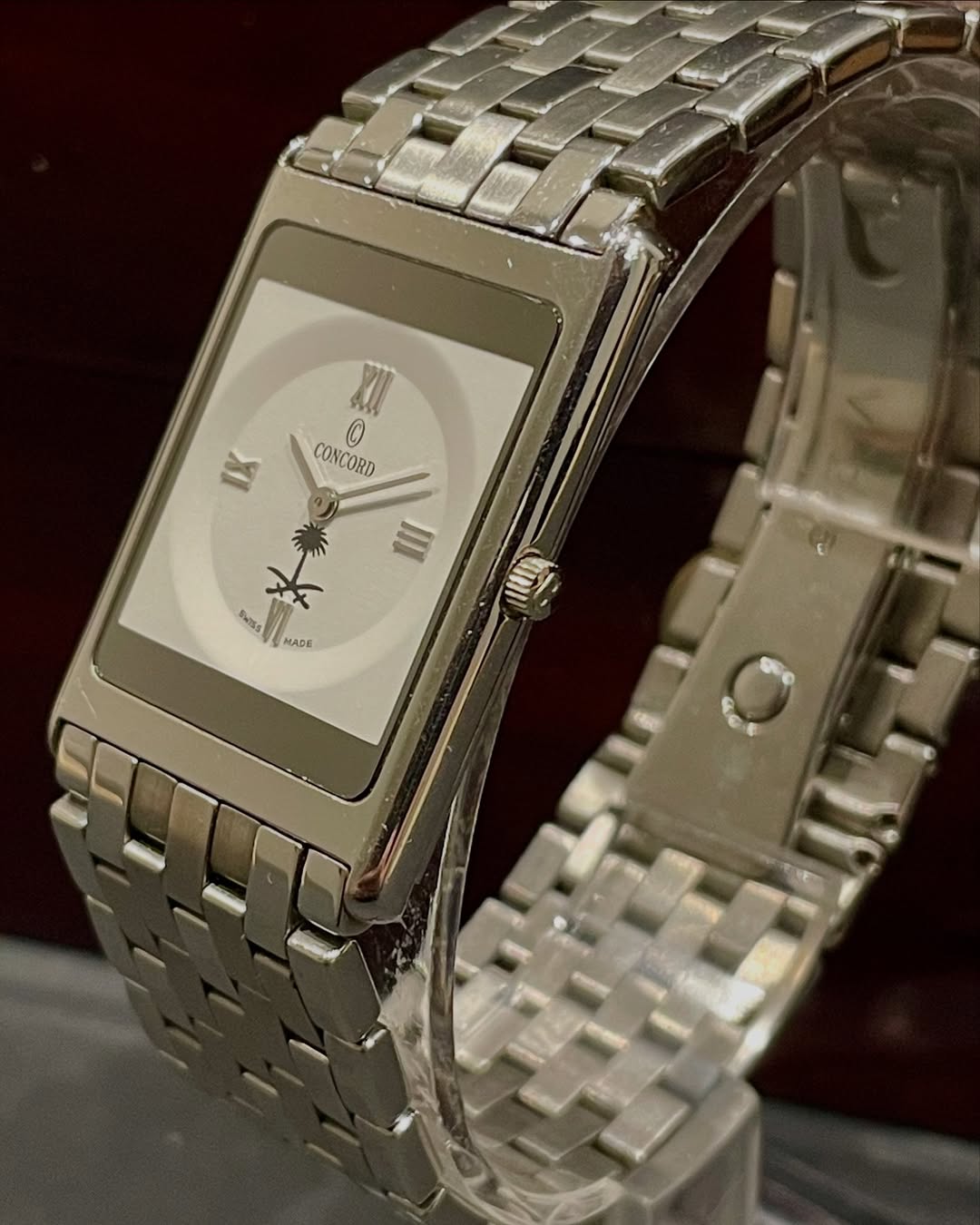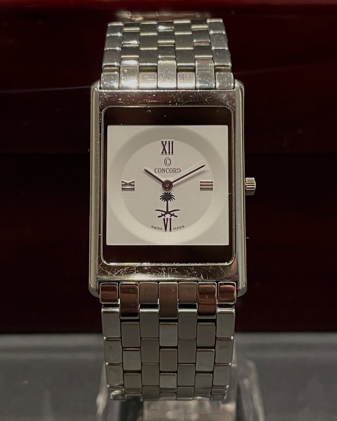 Preowned Vintage Royal Icon By The Swiss House Concord – Crafted From Stainless Steel With An Ultra-Thin Design And An Elegant Dial Bearing The Emblem Of The Kingdom Of Saudi Arabia, Marking It As A Special Edition Presented As An Official Royal Gift. Powered By A Precise Quartz Movement, It Merges National Symbolism With Classic Swiss Elegance, Making It A Piece That Embodies Profound Historical And Diplomatic Significance – In Excellent Overall Condition