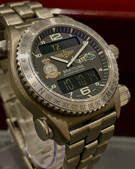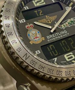 This Model, The Breitling Emergency E56121, Features An Ultra-Light Titanium Case Measuring 45mm – Combining Durability With Remarkable Comfort. The Dark Grey Dial Is Adorned With Official Emblems Of The 28 Squadron, Capturing The Heritage Of The British Royal Air Formations In A Distinguished Display.