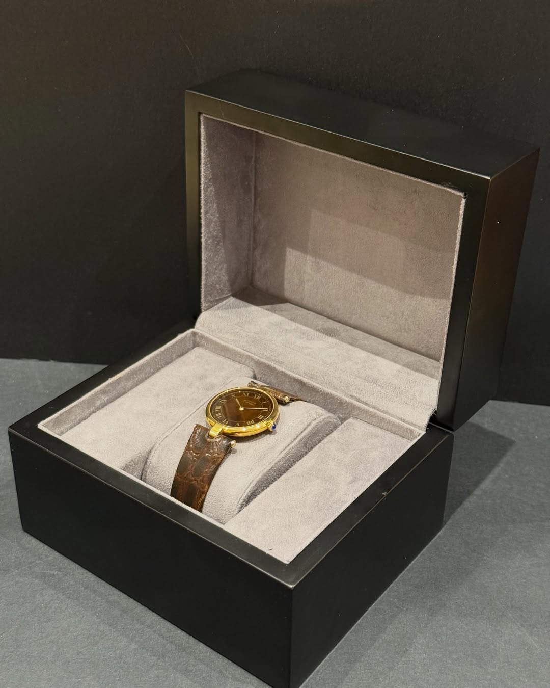 A Timepiece That Speaks In Quiet Luxury — A Warm Dial Evoking Aged Polished Wood, Framed By The Iconic Rounded Gold Vendôme Case Where Pure Elegance Meets Perfect Balance. Roman Numerals Flow With Confidence, While Gold Hands Glide With The Precision Of A High-Grade Quartz Movement.