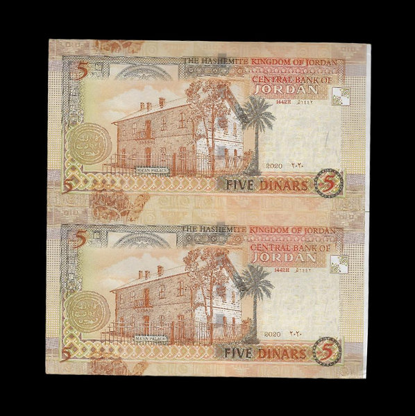 Rare, Fatal Error Jordan Banknote, 5 JOD – 2020 UNC – Bank Error Merged- 2020 UNC – Never Used