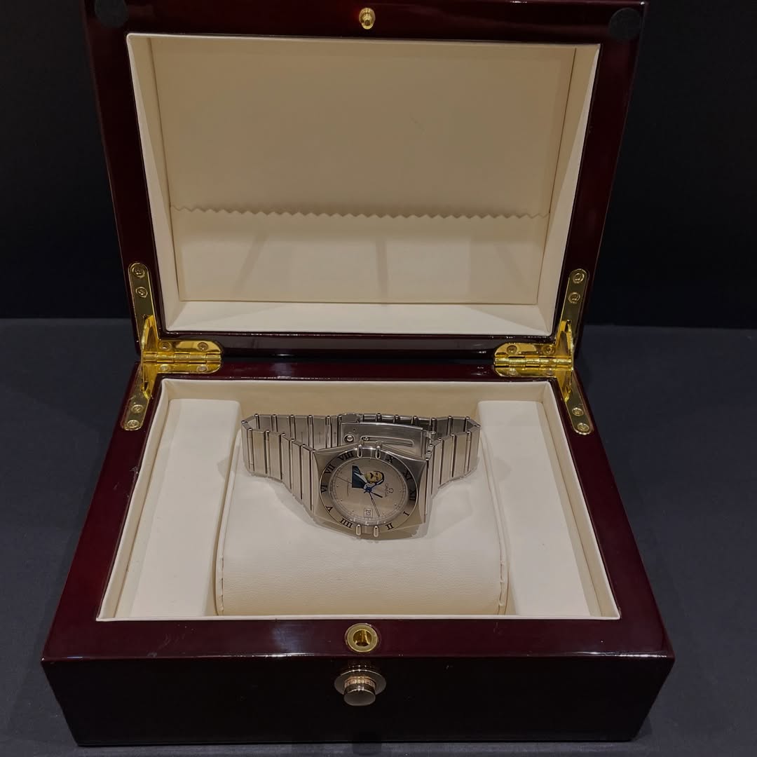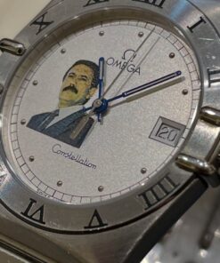 Preowned Vintage- A Rare Timepiece By Omega, Produced In 1994 As A Tribute To The Late Yemeni President Ali Abdullah Saleh, Featuring His Portrait Prominently And Elegantly On The Dial.Crafted From Stainless Steel, The Watch Features A Classic Design With Roman Numerals Engraved On The Bezel And A Date Window At The 3 O’clock Position.This Was A Limited Official Edition Presented On Special Occasions, And Is Considered One Of The Rare Watches With A Distinct Presidential Character.A Well-Preserved Piece, Representing A Rare Symbol Of A Significant Chapter In Yemen’s Modern History