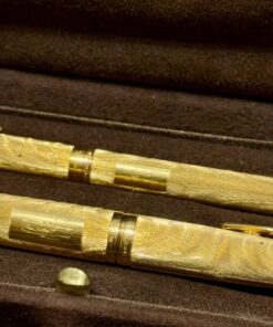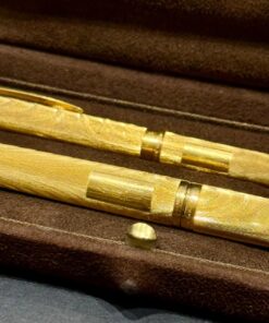 Both Pens Are Heavily Gold-Plated With Elegant Guilloché-Style Engravings Reflecting The Refined French Aesthetic. Preserved In Their Original Presentation Case Adorned With The Golden Royal Crown, This Set Remains In Exceptional Condition — A Treasure For Collectors Seeking Symbolism, Heritage, And Royal Legacy