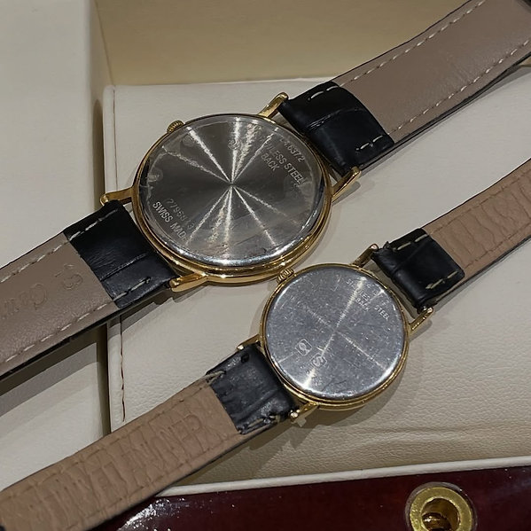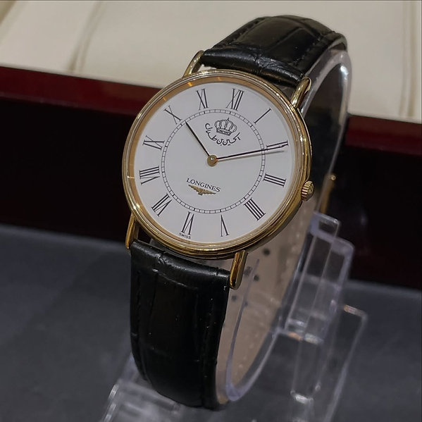 Preowned Vintage unique dual royal masterpiece set from the prestigious Swiss house “Longines,” specially issued in 1994 as a royal edition—featuring the crown and the name of His Majesty King Hussein bin Talal,A refined blend of elegance and classical simplicity.