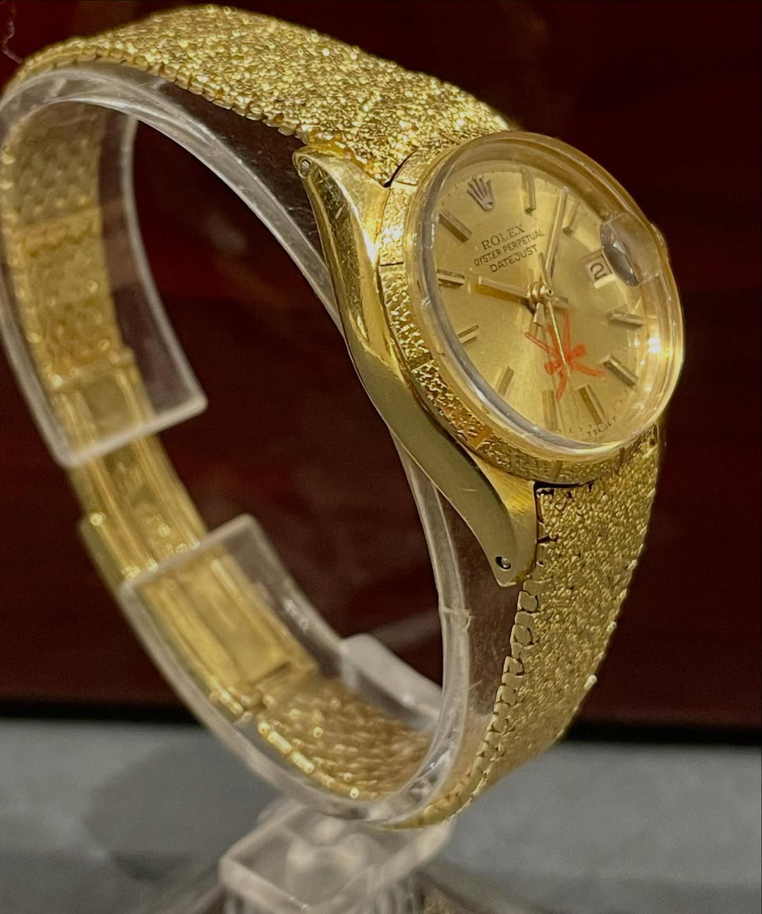 •Full Solid Gold Case And Bracelet With A Rare Textured Finish, Granting The Watch A Distinguished Protocol Presence.