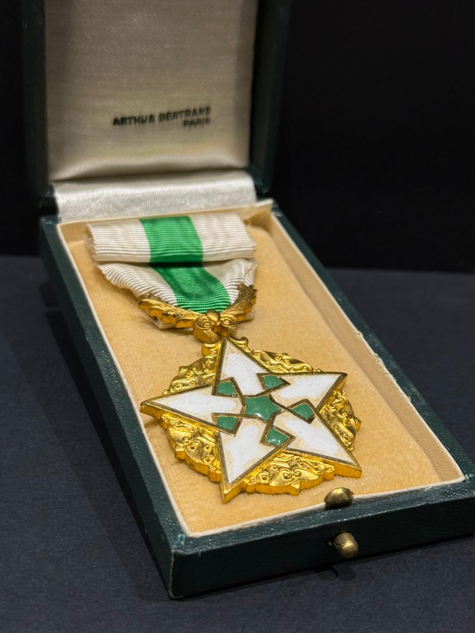 The Order is awarded in 5 x classes or grades. This is the ‘Gold’ or 3rd Class Badge – Instituted on 25 June 1953, as an award for service to the state or to the ‘Arab cause’